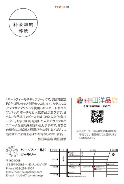 「ハートフィールドギャラリー」にて、3日間限定POP-UPショップを開催いたします。